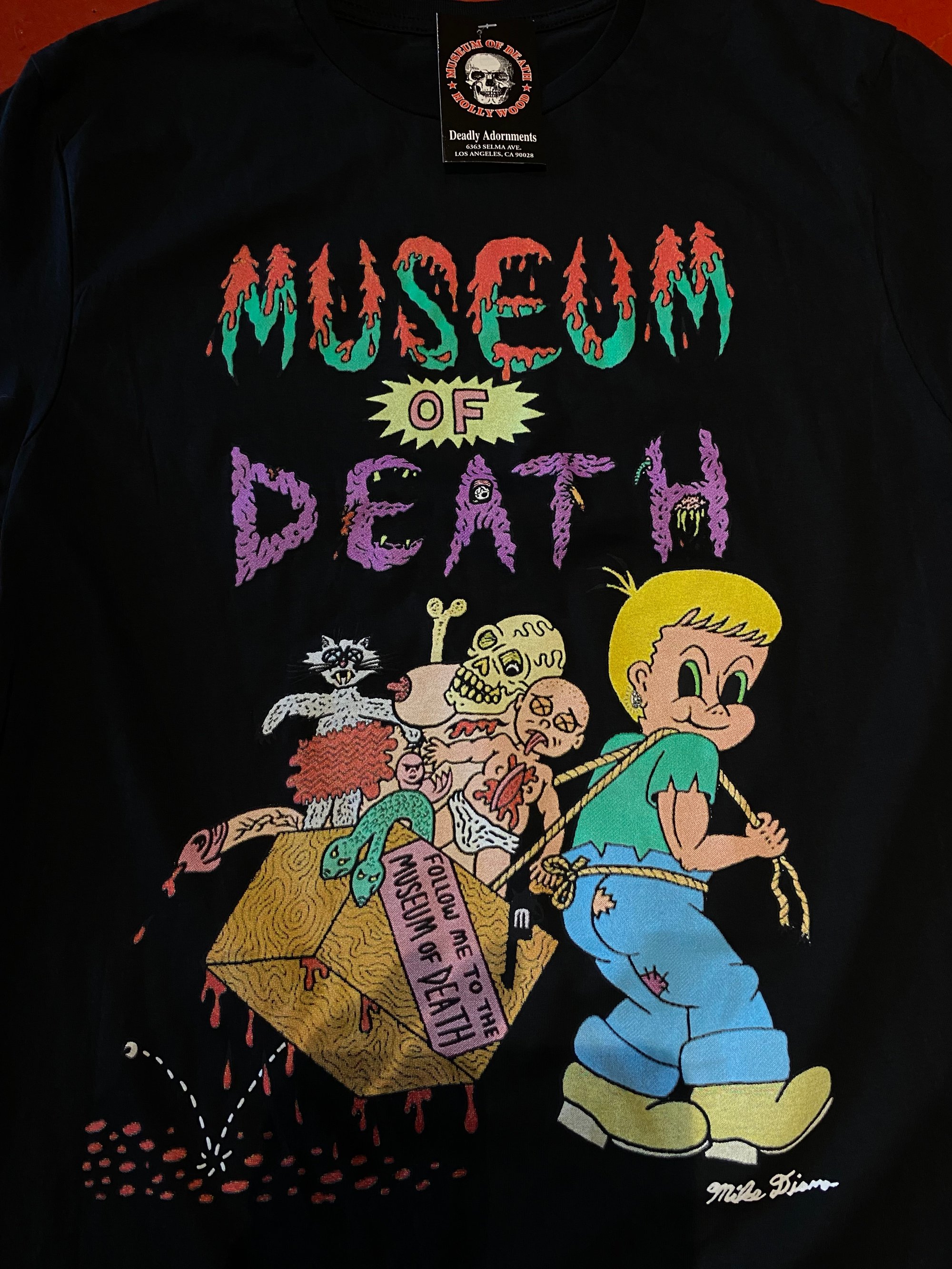 Original artwork by the infamous comic book artist Mike Diana. Standard men's black tee.